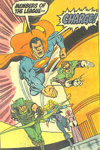 But if you shut off your brain and sit back for the ride, as a simple, old fashioned page turner, "When a World Dies Screaming!" is an enjoyable romp, featuring the "classic" League -- Superman, Batman, Wonder Woman, The Atom (Ray Palmer), Flash (Barry Allen), Green Lantern (Hal Jordan), Green Arrow (Ollie Queen), Black Canary, Aquaman, Elongated Man, Red Tornado, and in smaller parts, Hawkman & Hawkgirl and The Phantom Stranger -- in an adventure of world shaking and galaxy spanning dimensions, all neatly told and wrapped up in 70 pages. And, honestly, if you're harkening for bombastic, but classically archetypal JLA adventure, it's probably a better hit than later things like JLA: Liberty and Justice and the maxi-series Justice (their painted hues notwithstanding)!