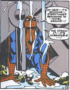 This also builds to what has become one of the most oft cited scenes in Spidey -- and comics -- lore, as Spidey gets buried between tones of wreckage, and through force of will, as much as muscle, must heave free of the debris to save his Aunt May (it was even homaged in the movie Spider-Man 2). I suppose the notion of wrapping a climactic conflict around a battle with an inanimate object, and where the struggle is, in a sense, as much internal as external, was maybe seen as ground breaking in a super hero comic.